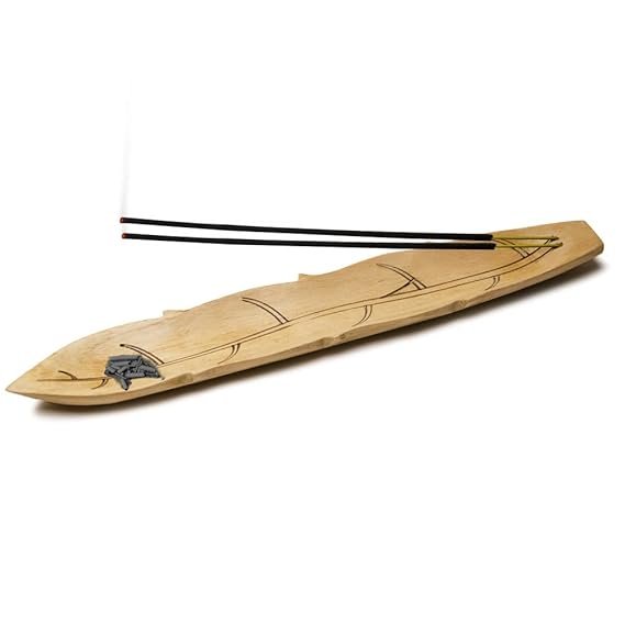 Soulveda Cycle Pure Wooden Agarbatti Stand With Ash Catcher (Natural) | Handmade Incense Sticks Holder | Leaf Shape Dhoop Stick Holder Teak Wood
